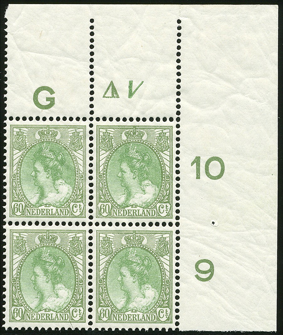76, 60 cent olijf en groen, in luxe postfris hoekblok van vier € 500