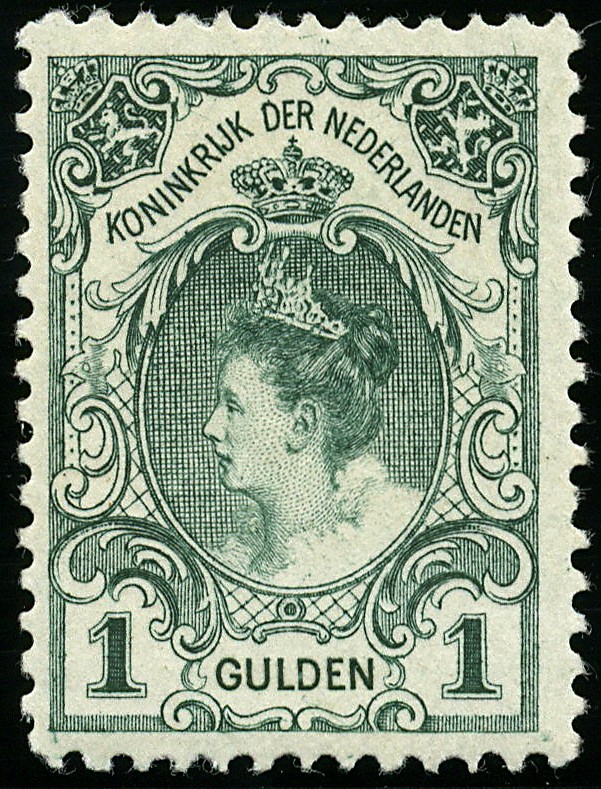 77D, 1 Gulden blauwgroen, Lt.11½, postfris prachtex. met potloodsignering op gomzijde € 550