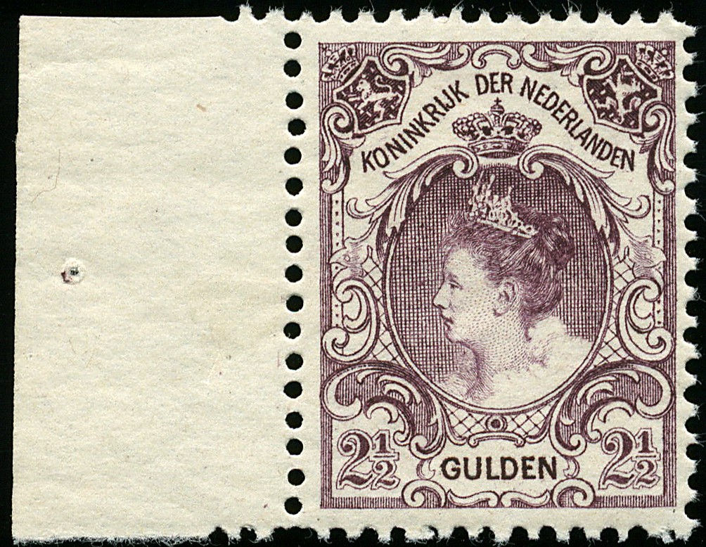 78C, 2½ Gulden grijsviolet, postfris linkerrandstukje, prachtex. € 375