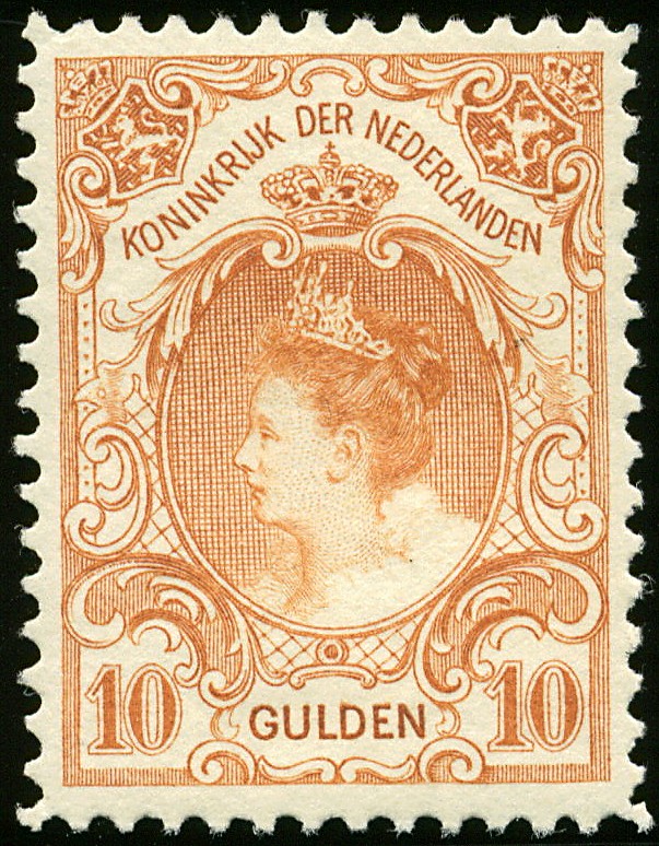 80, 10 Gulden oranje, ongebruikt prachtstuk met cert. Moeijes (1988) € 950