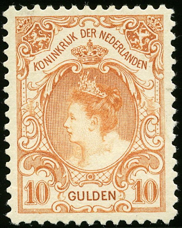 80, 10 Gulden oranje, ongebruikt vrijwel prachtex. met minimaal plakkerspoor, origineel vezeltje en gomkreukje, cert. Vleeming (2017)