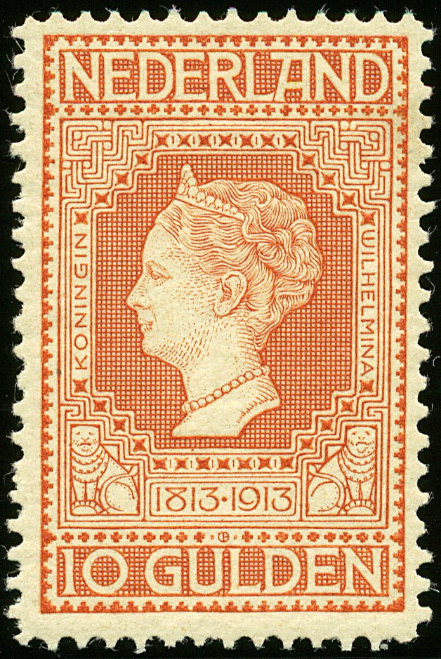 101, 10 Gulden roodoranje, ongebruikt, vrijwel postfris prachtex. met cert. Vleeming (2017) € 950
