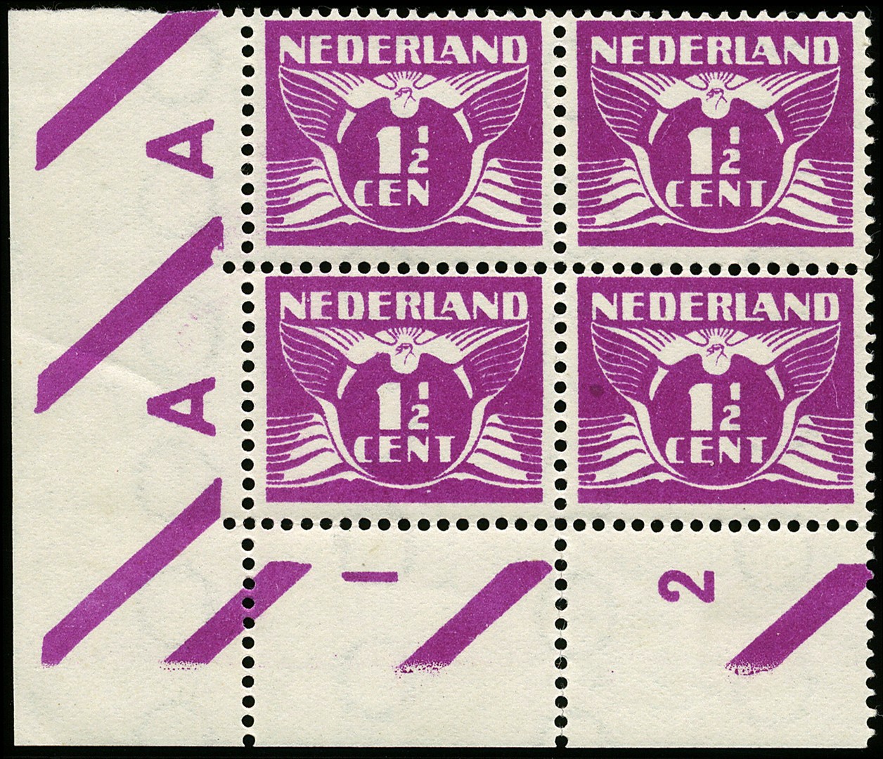 171Af, 1½ CEN in blok met 3 x 171, postfris prachtex. € 275