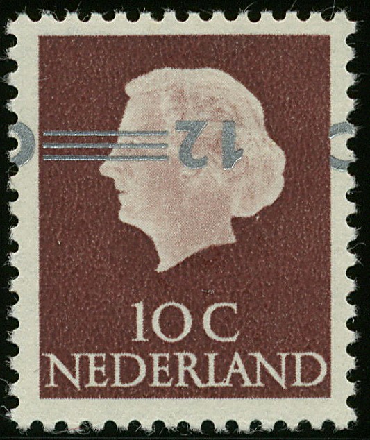 712fb, 12 ct. op 10 ct. roodbruin, type I met kopstaande opdruk, miniem gomplekje, ov. postfris € 450