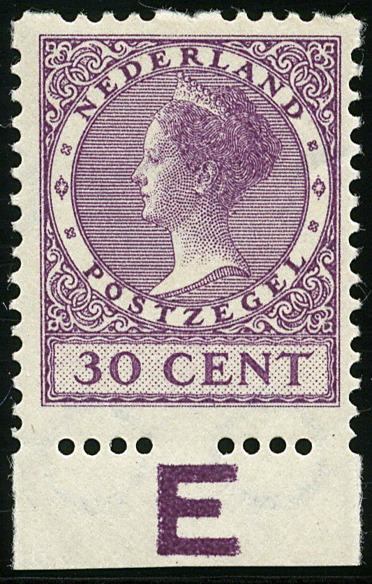 29a, 30 cent donkerlila met afwijkende tanding, ongebruikt pracht onderrandstukje € 200