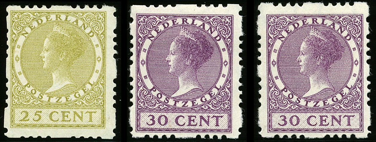 51a (cert.), 53a en 53b, 25 en 30 cent (2) met afwijkende tanding, ongebr. prachtex. € 820