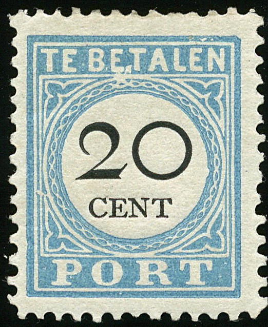 10fg-A en 10fg-B, 20 cent in de tanding 13½ x 13¼ resp. 12½ x 12, beide 'Type V', ongebr. prachtex. € 555