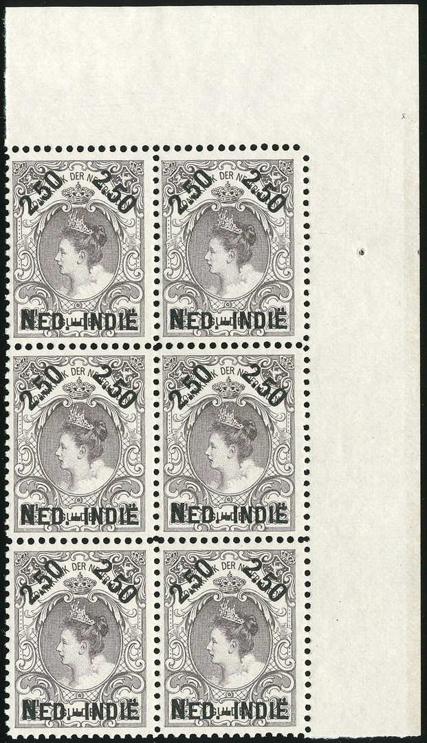 37A, 2.50 op 2½ Gulden Hulpuitgifte, postfris pracht hoekblok van zes. € 1500+