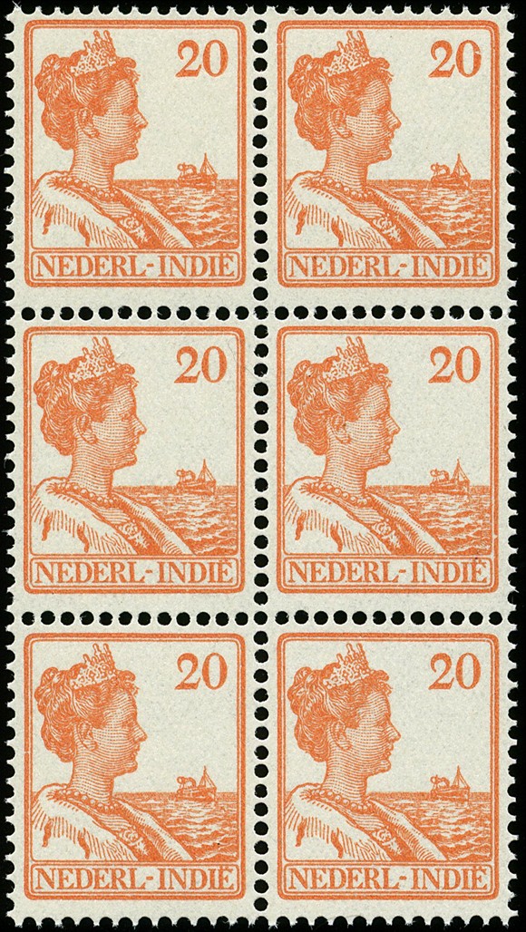 115/28, Koningin Wilhelmina met scheepje, postfrisse prachtserie in blokken van zes. € 1950