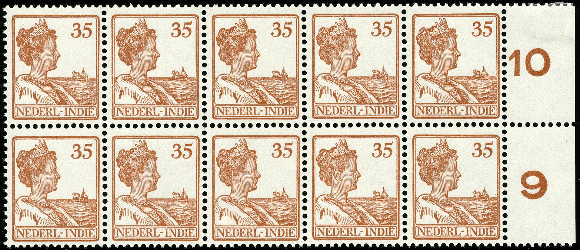 127, 35 Cent roodbruin in postfris pracht randblok van tien. € 500