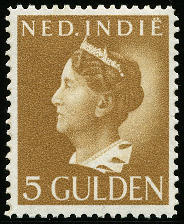 287, 5 Gulden geelbruin, postfris prachtex. € 400