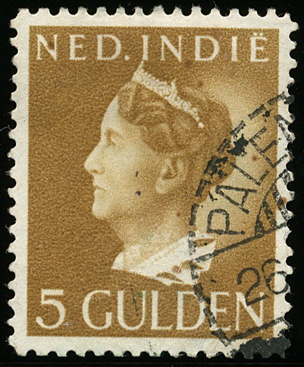 287Ba, 5 Gulden geelbruin met stempeldeel 'PALEM(BANG) 26...", Lb-stempel met biffagerand en brede middenbalk met Befund Vleeming (2017): "...stempelafdruk van origineel stempel..., datum niet vast te stellen..." € 3750