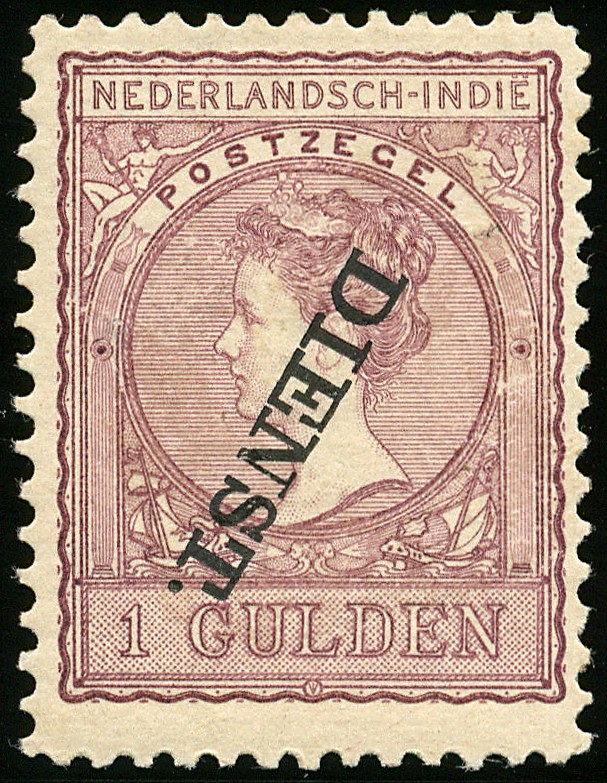 Dienst 26f, 1 Gulden doflila met kopstaande opdruk, ongebr. vrijwel pr.ex. met cert. W. Moeijes (1988), miniem getint. € 700