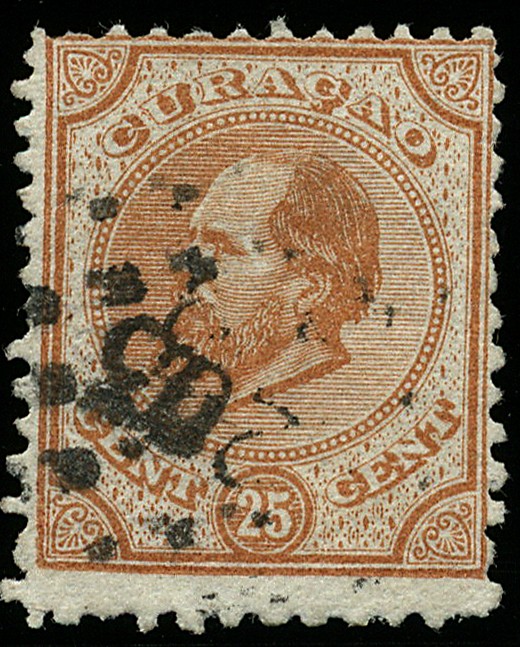 7E, 25 cent oranjebruin, Kt.11½ x 12, gebruikt prachtex. met cert. Vleeming (2012) € 1000