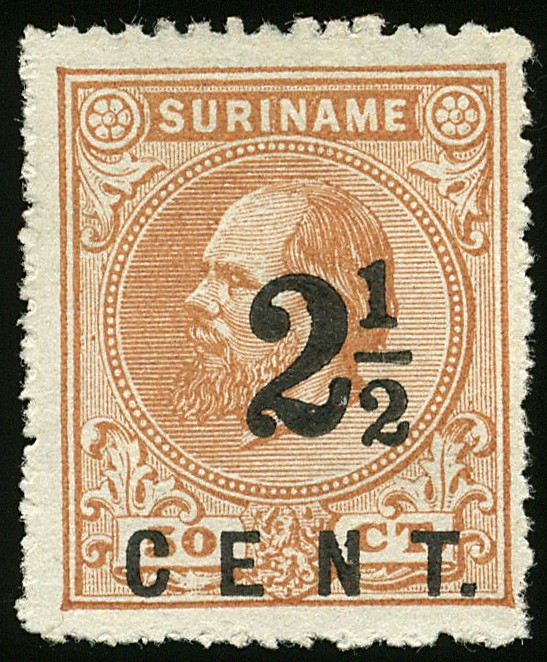 21A, 2½ cent op 50 cent oranjebruin, mooi gecentreerd ongebruikt prachtex. € 400