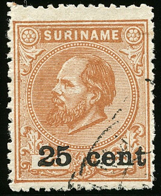 38A, 25 ct. op 50 cent oranjebruin, Lt.14 kl.g., gebruikt prachtex. met cert. NVPH (1972) € 175