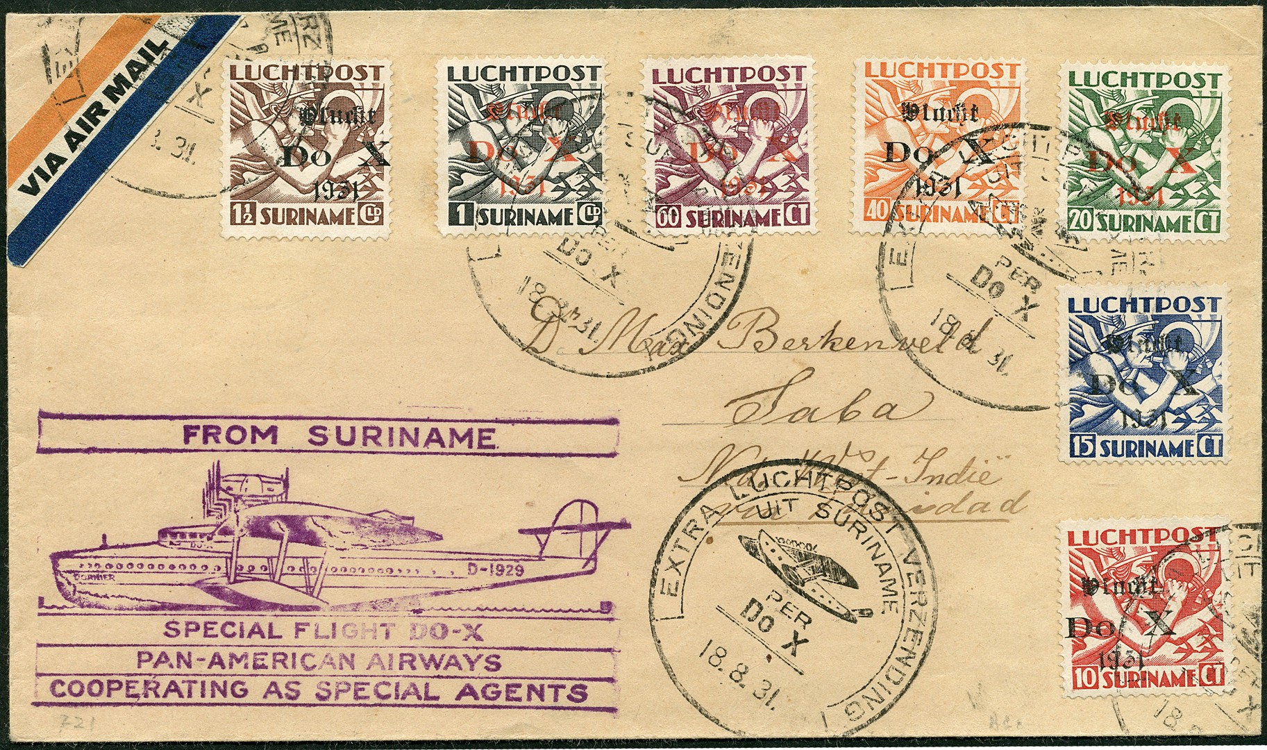LP8f/12f, (Do.X zonder punt), 13/14 op Do.X-vlucht-cover 18.8.31 naar Saba (zegelwaarde € 865)
