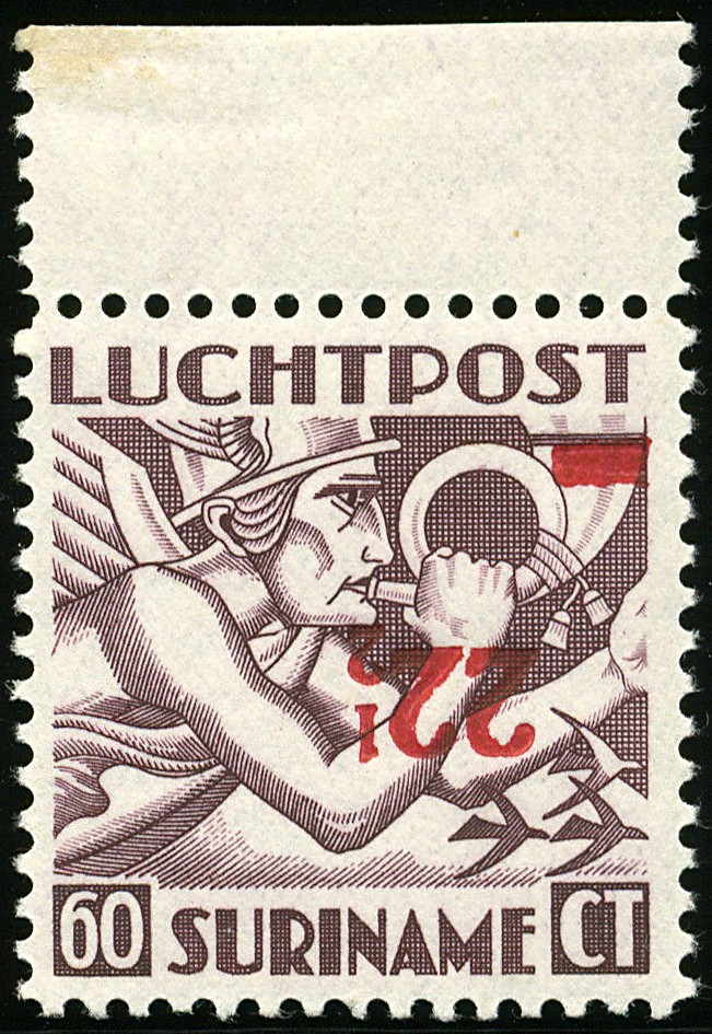 LP24fa, 22½ op 60 cent donkerviolet, met kopstaande opdruk, postfris pracht randstukje met cert. NVPH (1959) € 400