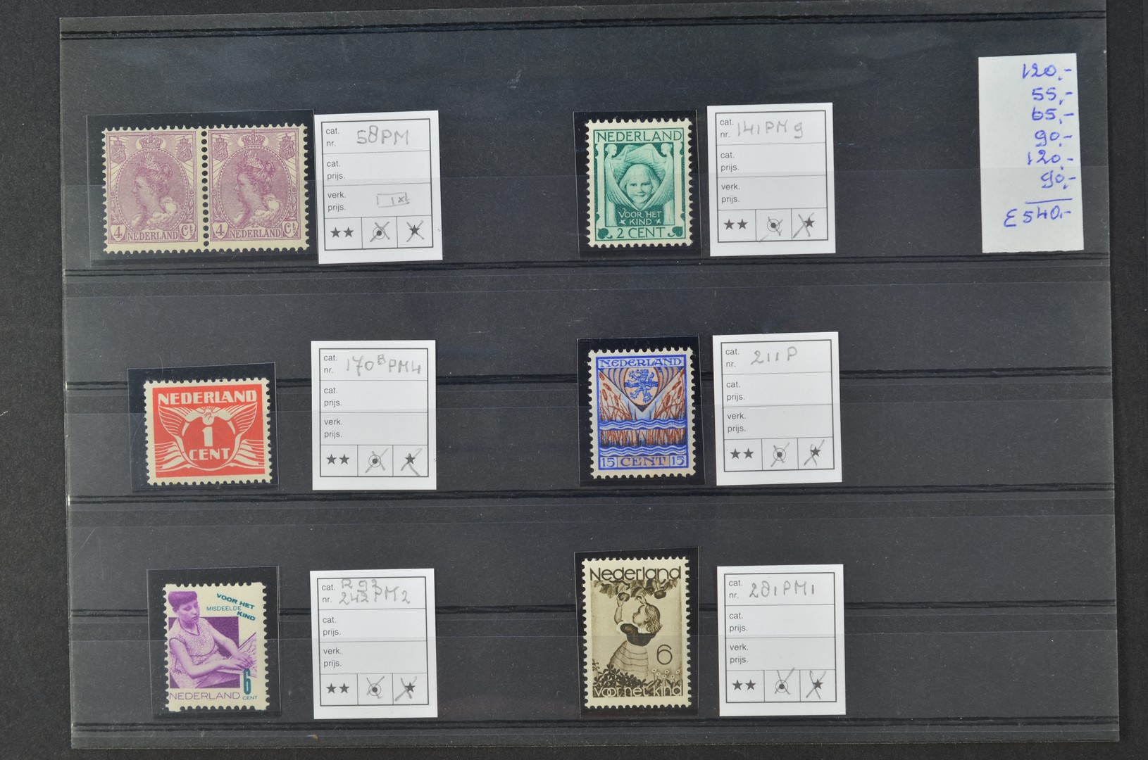 PLAATFOUTEN, 58PM, 141PM9, 170BMP4, 211P, 242PM2 op Roltanding 93 en 281PM1, postfrisse prachtex. Cat.wrd. Mast € 540