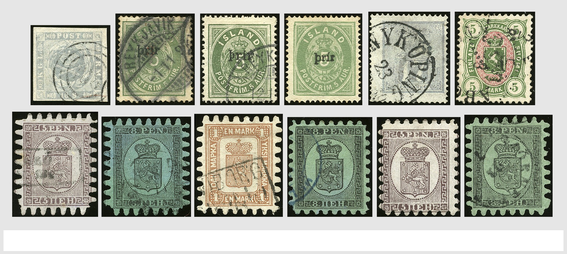 SCANDINAVIË, diverse landen o/*/** waarbij engros, echter ook beter materiaal in wisselende kwaliteit fraai tot pracht, veel Finland en IJsland met o.a. Mi.5Ax, 5cx, 6Ax, 6cx (2 x), 10c, 25a, IJsland Mi.18A-I fraai, 19B-I gebr., 19B-II ongebr. met keur Thier, Zweden 15b, Denemarken 6, etc.