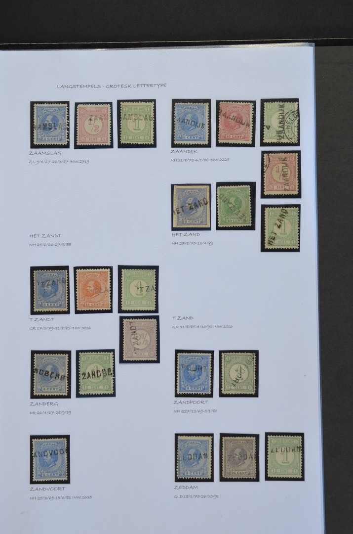 NAAM- of LANGSTEMPELS, schitterende, alfabetisch opgezette verzameling meest op emissie 1872 en 1876 op blanco bladen in ringband, duidelijke omschrijving van plaats, provincie en verstrekkingsdata. Uitzonderlijke prachtkoop van 1350 stuks, waarbij vele mooie en zeldzame afdrukken