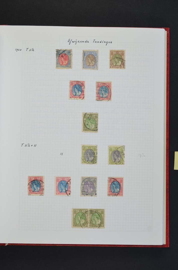 1899-1921, Emissie Bontkraag (excl. nr. 80, incl. nrs. 102/03, 106), meest gebruikte, gespecialiseerde verzameling met blokken, typen, tandingen, papiersoorten, kleurschakeringen, iets verschoven medaillons, plaatfouten (zeer uitgebreid van de 5 cent nr. 60) w.o. hogere genoteerde, gedocumenteerd opgezet op bladen in album. Heeft als studiemateriaal en ter illustratie gediend voor behandeling in HPN
