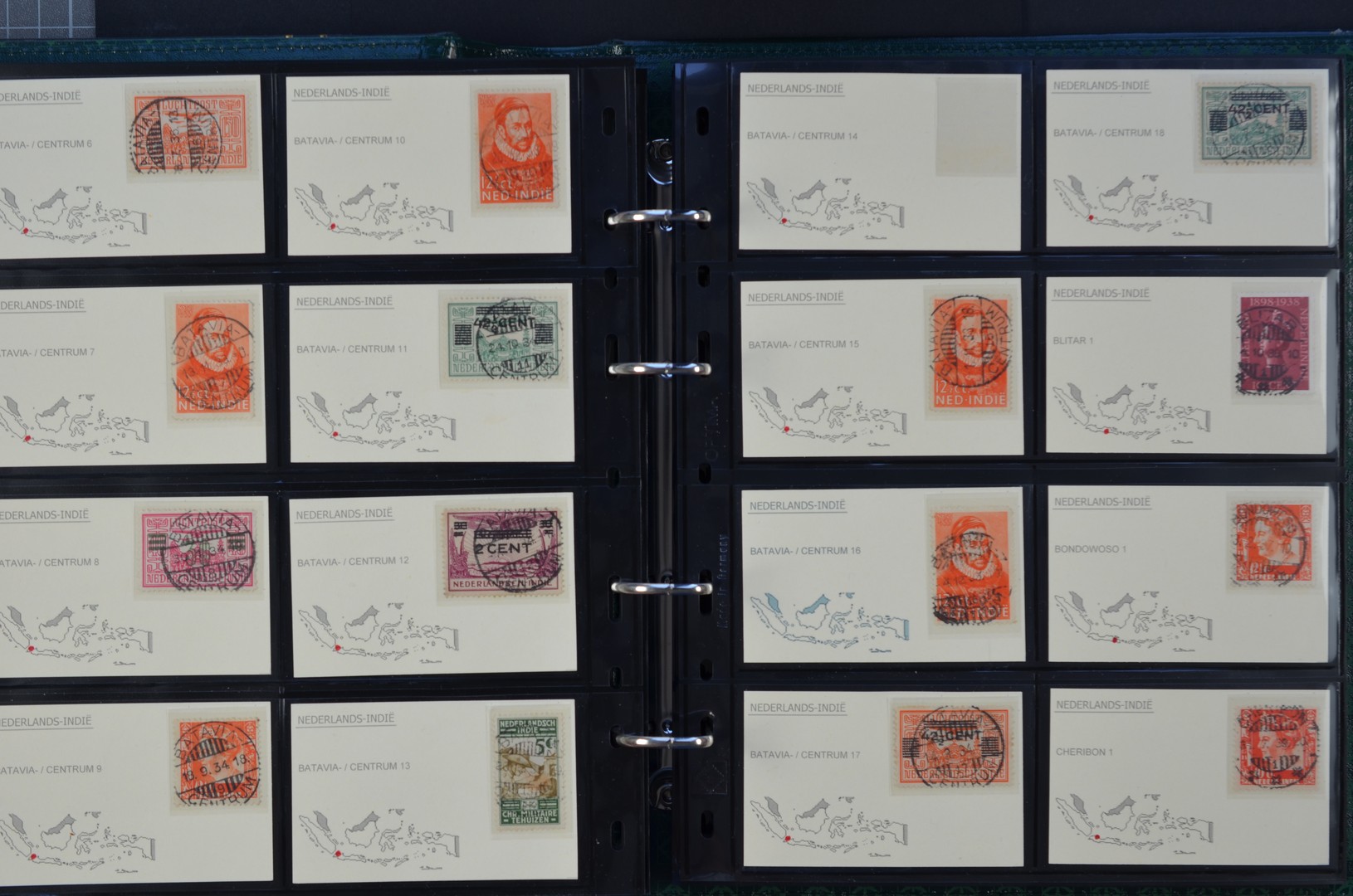 NED.- INDIË POSTHISTORIE, verzameling langebalkstempels met nummer (type LBnr) op losse zegels van diverse emissies en waarden, 176 verschillende en merendeels in prachtkwaliteit op kaartjes met locatie, in Leuchtturm-ringband
