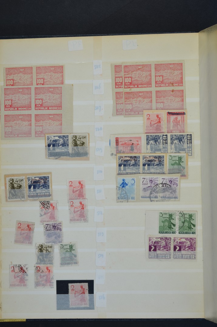 INDONESIË 1945-1949, o/*, doublettenverzameling Java en Sumatra met een grote diversiteit aan opdrukken, variëteiten, definitieve uitgaven, mogelijk aardige stempels, in aantallen, in 2 dikke insteekboeken (voorzichtig openen!)