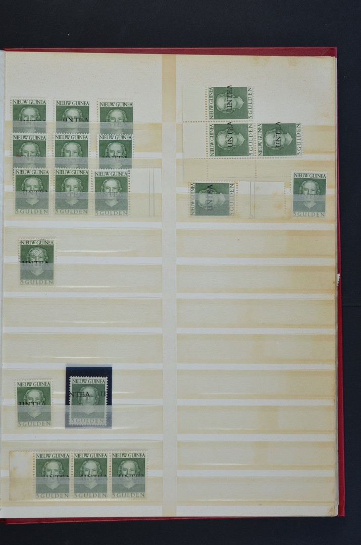 UNTEA, voorraadstock o/** 1e en 2e druk in insteekboek w.o. diverse opdrukfoutjes als dichtgelopen letters, sterk verschoven opdruk (o.a. 5 gulden), etc.
