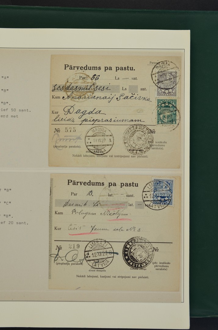 LETLAND 1924-1937, verzameling 'Money Orders', mooi opgezet met beschrijvingen, in 2 Lindner albums