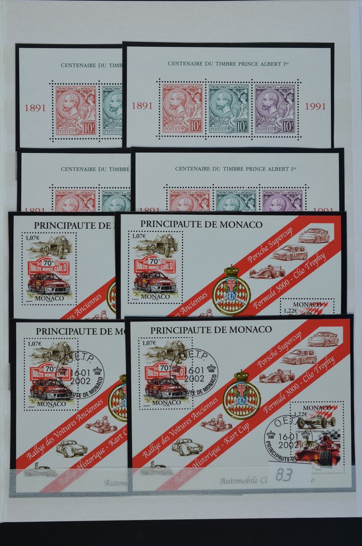 MONACO 1973-1996, grote partij blokken/siervellen en enkele postzegelboekjes, gebruikt en postfris in dik insteekboek. Zeer hoge cat.wrd.