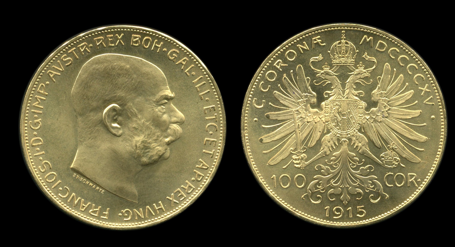 OOSTENRIJK, Gouden 100 Kr. 1915 restrike zfr./pr.