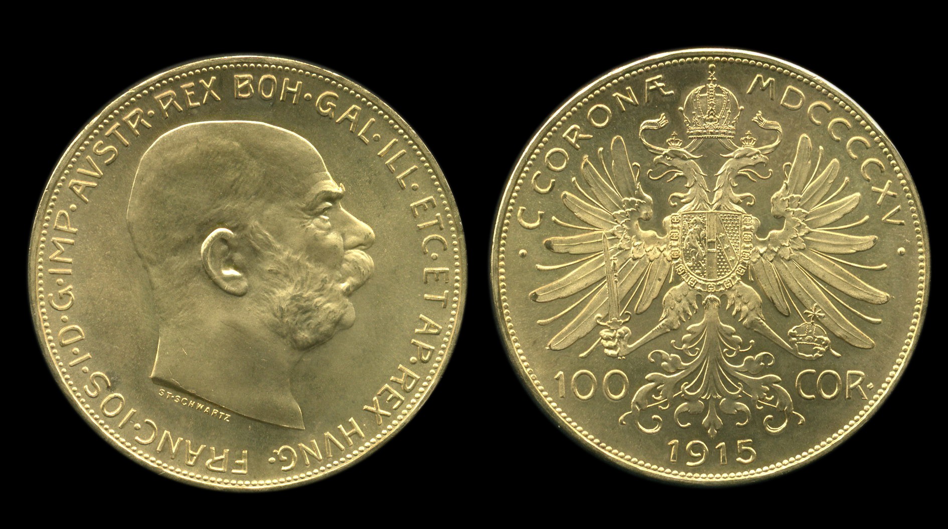 OOSTENRIJK, Gouden 100 Kr. 1915 restrike zfr./pr.