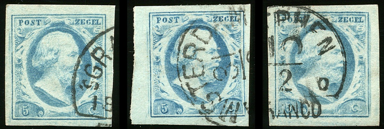1k, 5 Cent plaat III in diverse nuances lichtblauw, 18 losse zegels en 1 paar uit het rechter bovenkwadrant van een plaatreconstructie, posities 26, 27, 28, 29, 30, 32/33, 34, 35, 36, 38, 39, 40, 41, 42, 44, 46, 47, 48 en 50. Uitsluitend prachtexemplaren in uitgezochte kwaliteit w.o. randstukken. € 1280