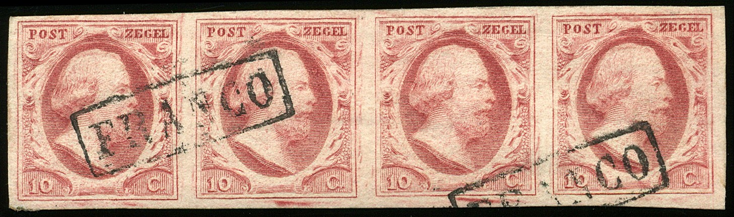 2p-Pl.X-77/80 op dik papier. Mooi gerande prachtstrip van vier. € 900