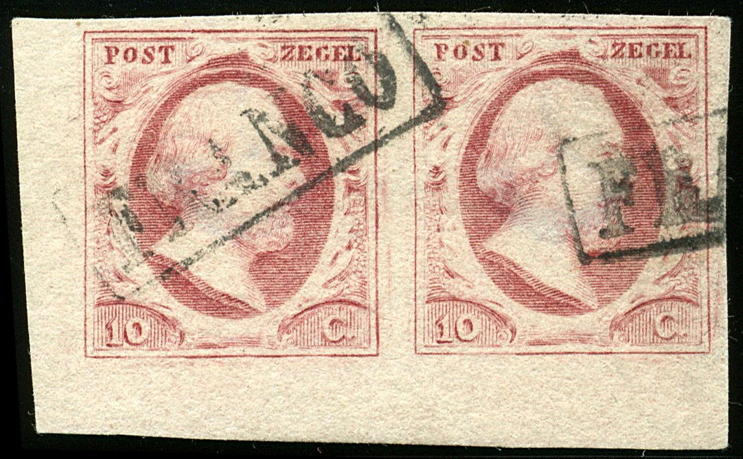 2q-Pl.X-46/47op dun poreus papier. Zeer breed gerand pracht hoekpaar