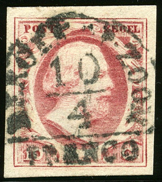 BERGEN OP-ZOOM A(EY.100) op 10 cent nr. 2b-Pl.I-87. Breed gerand prachtex. met volledige, als gewoonlijk wat gevlekte afst.