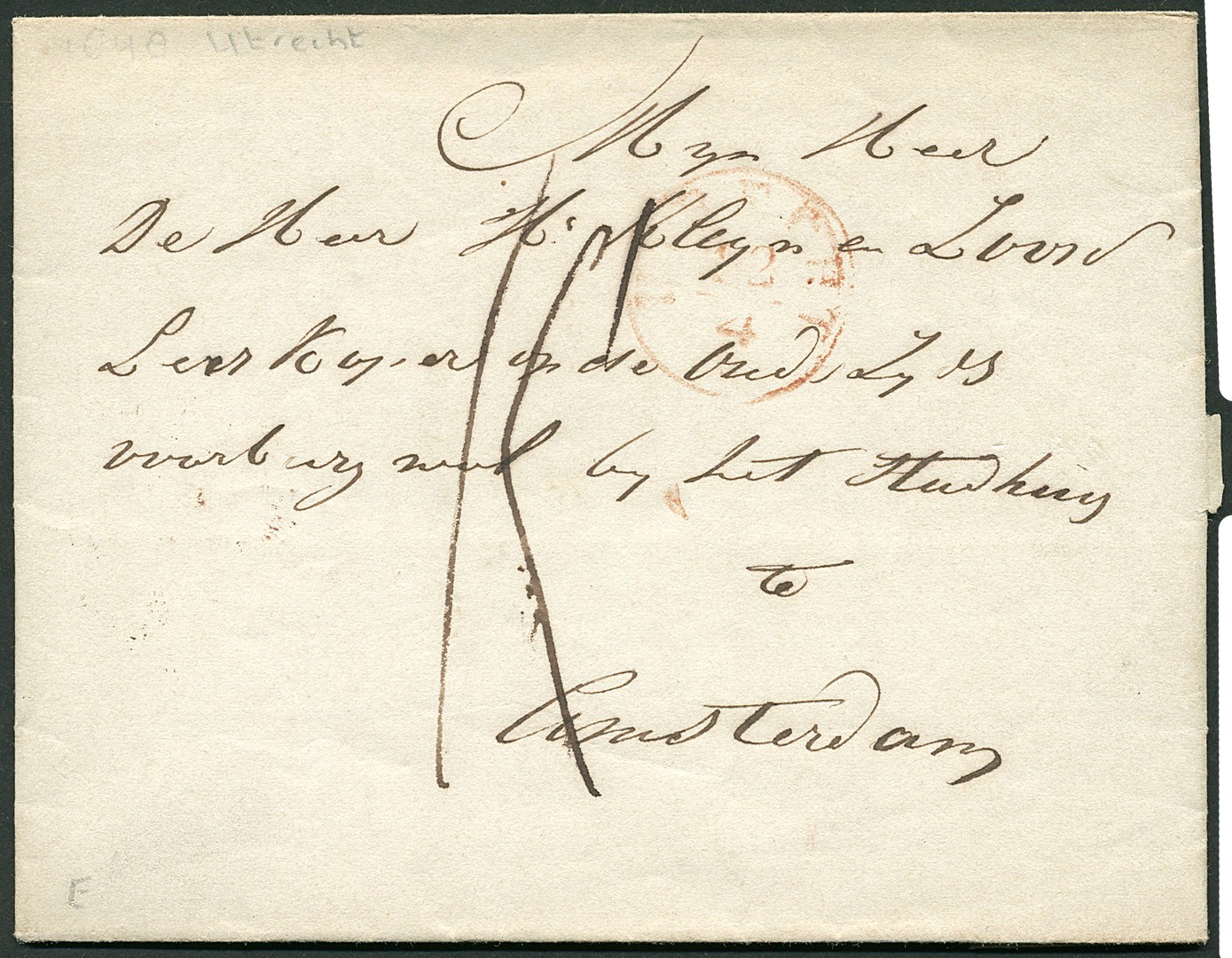 Cpl. vouwbrief van Utrecht 12-4-1848 naar leerkoper Kleijn op de Oudezijds, met de treurige mededeling dat de briefschrijver geheel onmachtig is de schuld van fl. 4207,28 af te lossen ´daar ik thans arm ben´, maar... etc. etc.