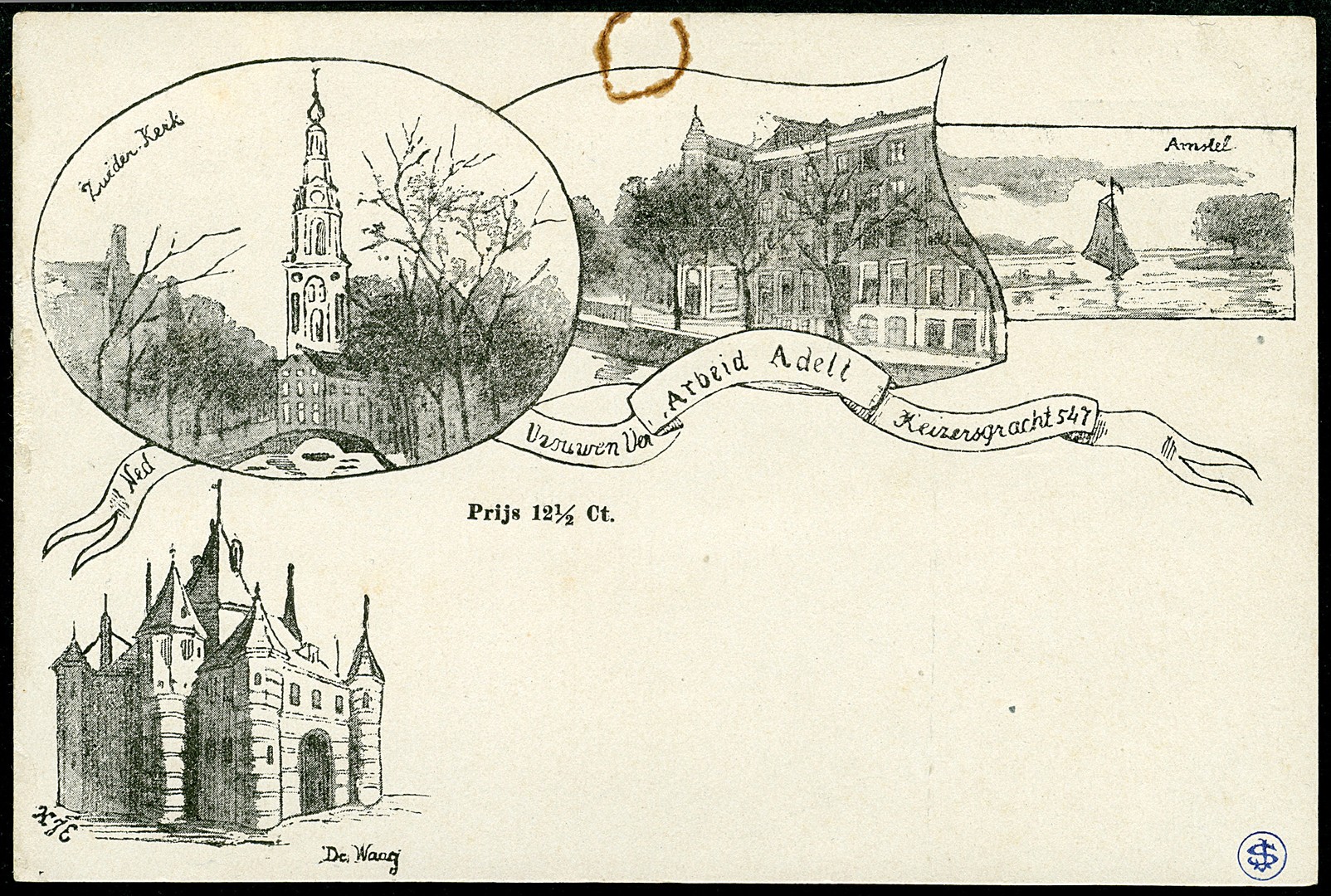 Particulier bedrukte bk. type Arbeid Adelt, AA3a. Ongebruikte vrijwel prachtkaart met roestplekje en op az. opplaksporen