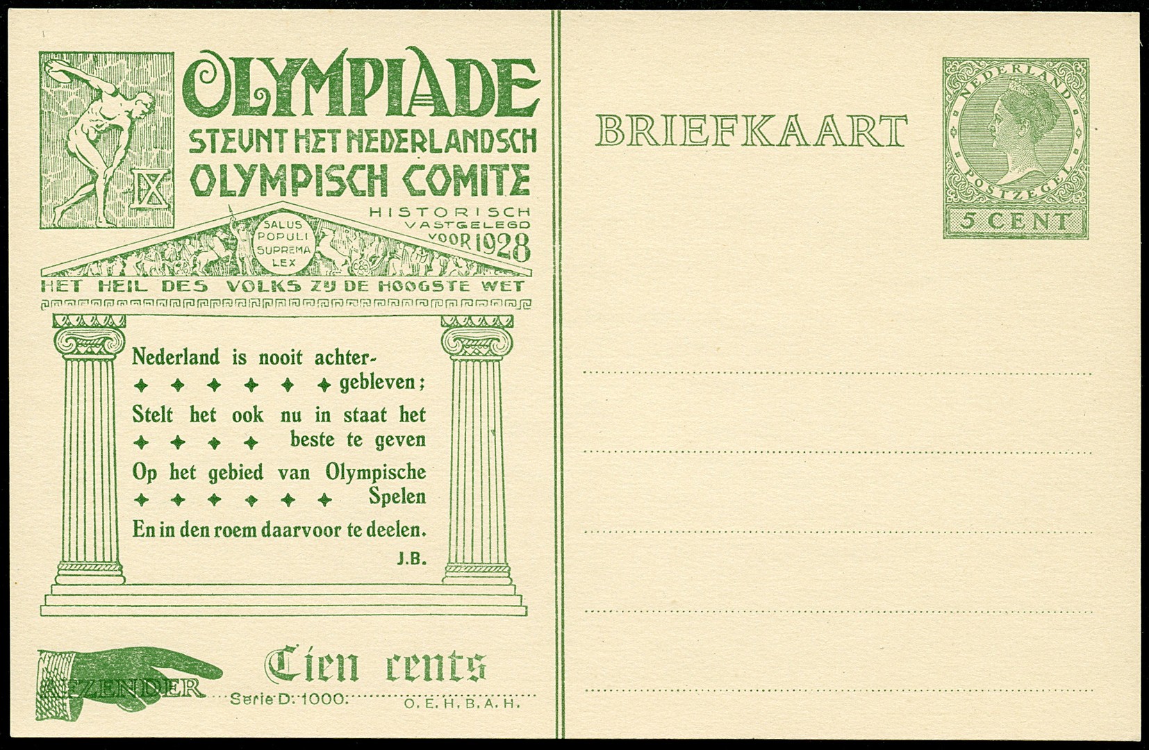 Particulier bedrukte bk. Olympiade 1928, OL20. Ongebruikte prachtkaart