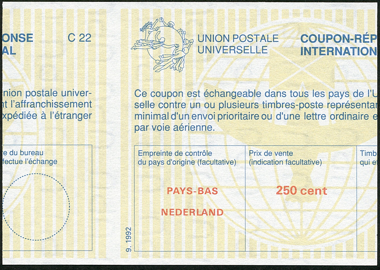 Internationale Antwoordcoupon G47 uit 1992 met variëteit ´Verticale versnijding´