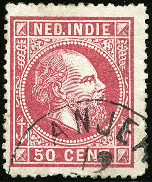 Halfrond-franco ANJER op 50c nr. 15. Vr. prachtex. met afst. waarvan volledige naam zichtbaar is. Zeer zeldzaam (V.1000)