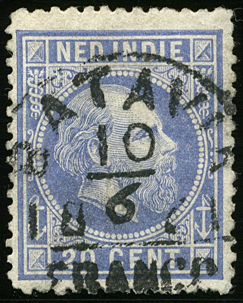 Halfrond-franco BATAVIA op 20c nr. 12. Prachtex. met luxe afst. van 10-6-1871