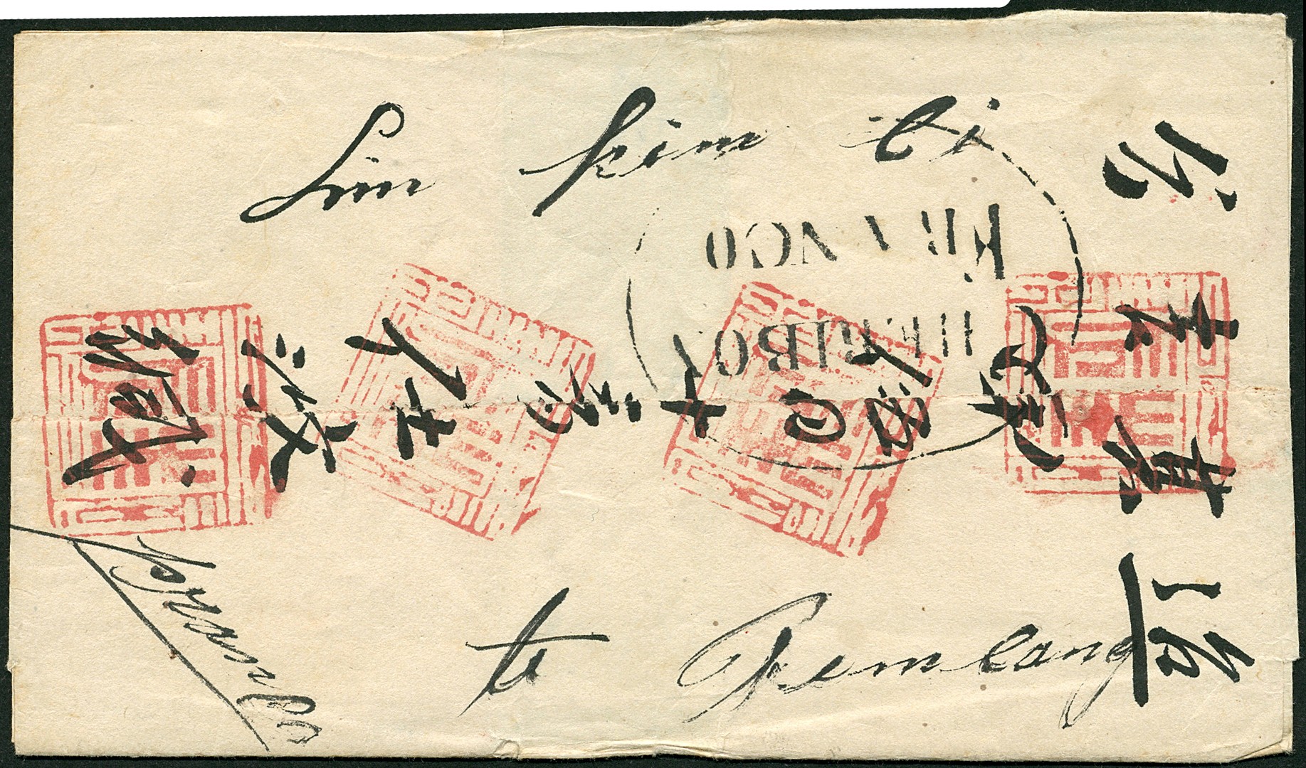 Ovaalstempel ´Rembang/Franco´ (WdB.141a) op Chinezenbrief van ca. 1855 naar Rembang, met op az. geschreven port ´40´ duiten