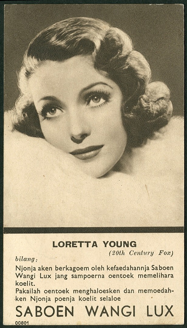 Lever´s Filmsterkaart nr. 1b, Loretta Young, Indonesisch, echt gebruikt, van Temanggoeng 4-10-1938 naar Magelang 4-10