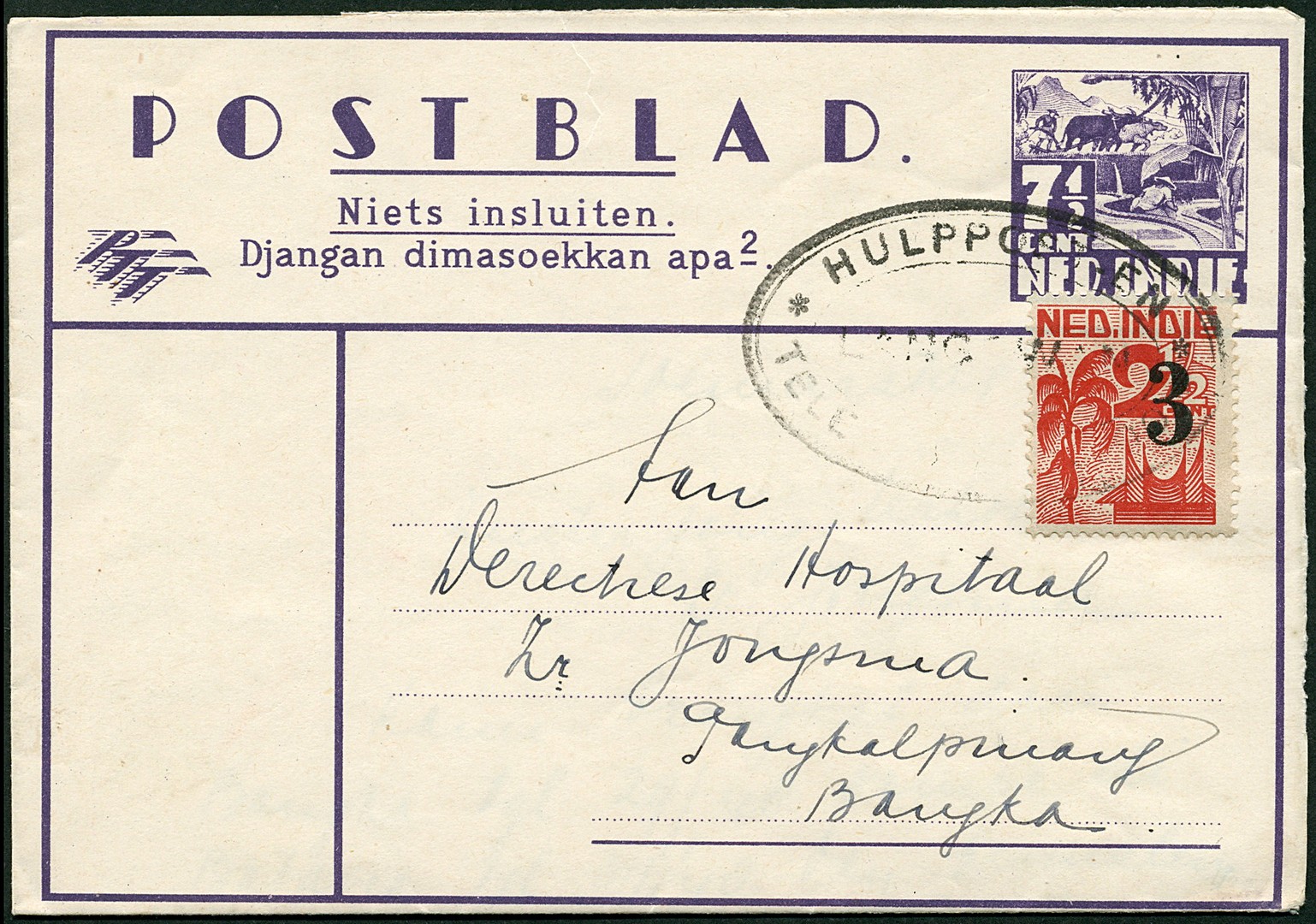 Ovaalstempel ´Hulppost- en/Telegraafkantoor/Langowan´ op met 3c bijgefr. postblad van Toemaratas 24-2-1948 (bij Langowan) naar Pangkalpinang (Banka). Zeldzaam noodstempel!