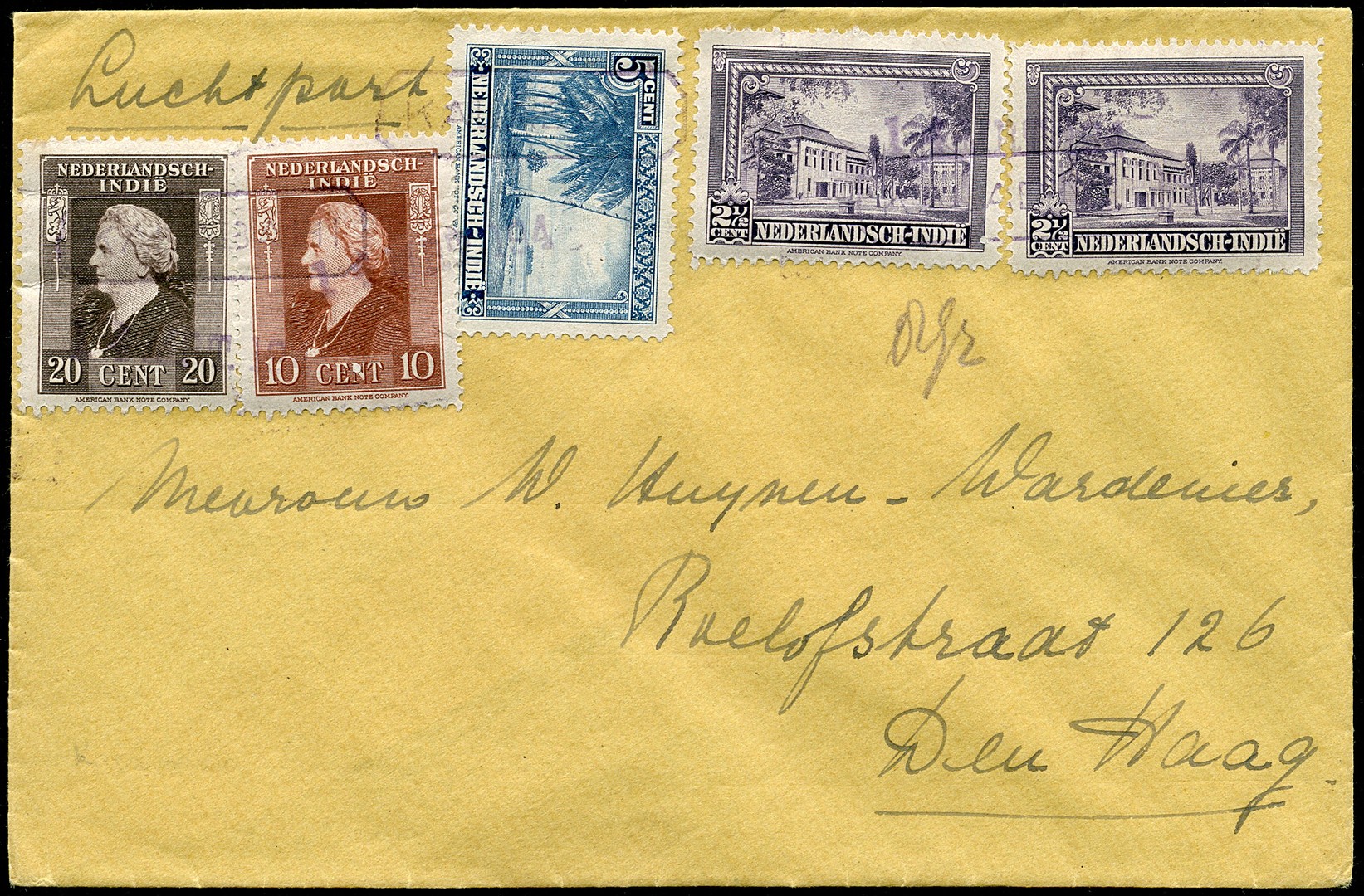 Noodstempel KALABAHI in achthoekig kader, in violet en met datumstempel 14 MRT 194. 3x op env. van 8 gram gefr. met ABC-zegels naar Den Haag. Zeldzaam!