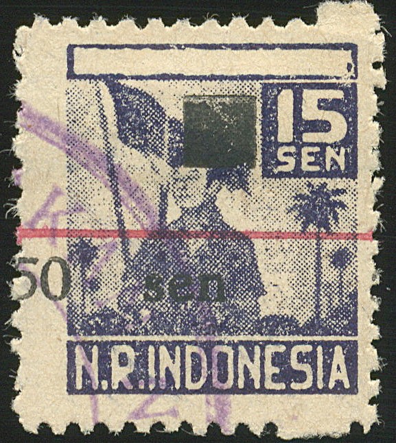 Sumatra. 0177, 50 sen overprint on 15s, fine cancelled. Scarce. € 300