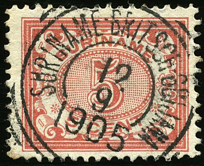 Vierkant SURINAME-BRITSCH-GUIJANA op 5c nr. 46. Prachtex. met superbe afst.