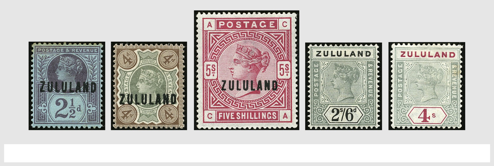 ENGELSE KOLONIËN, Zululand 1888-1896, o/* kleine verz. op insteekkaart met o.a. S.G. 4/6, 8, 11, 20/27, etc.